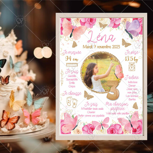 Affiche anniversaire personnalisée papillons