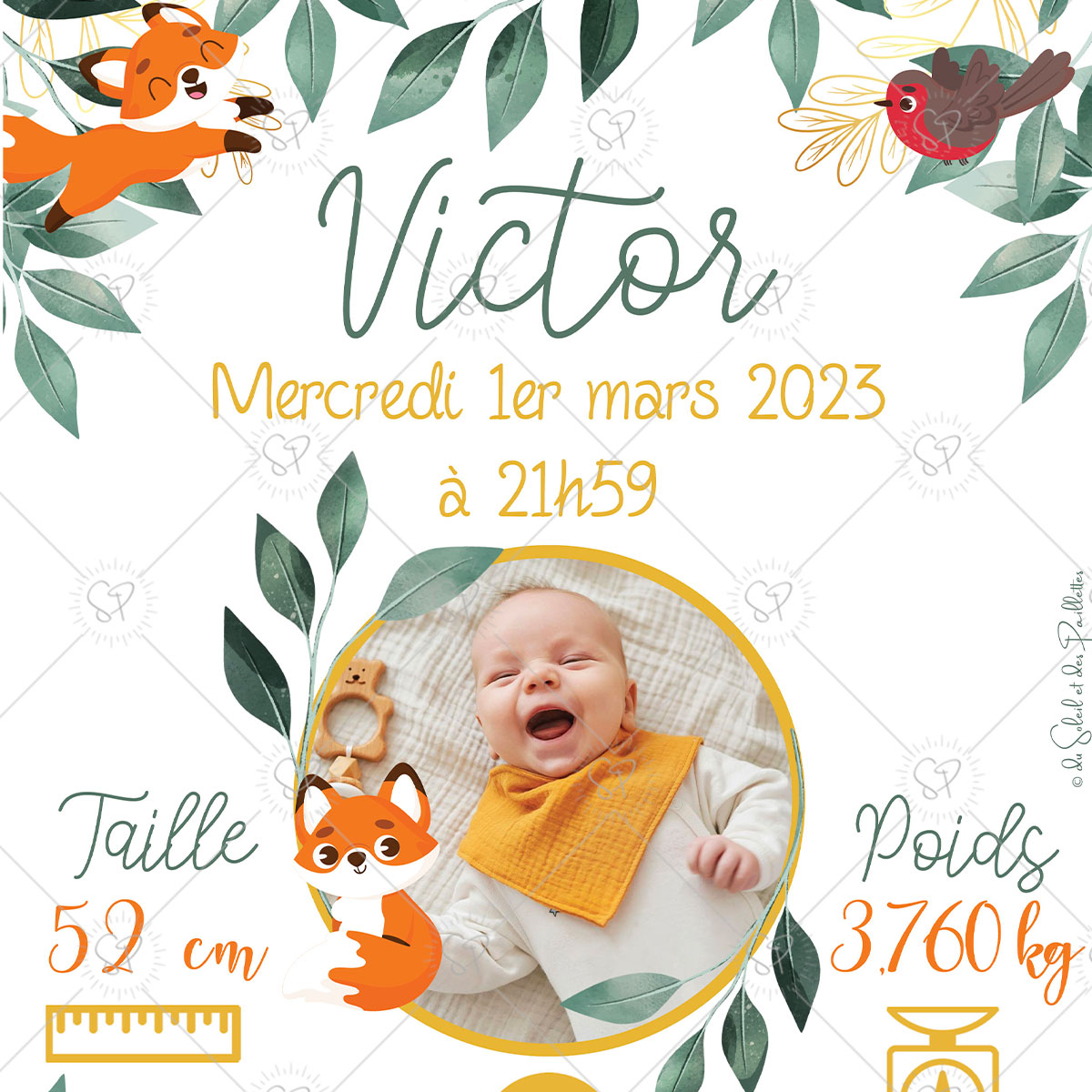 Et pour les amoureux des renards, cette affiche naissance existe aussi en version totale renard (option à sélectionner)