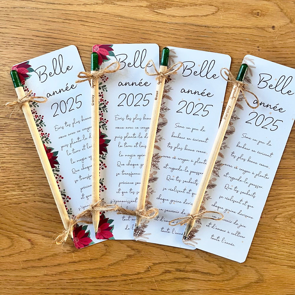 Surprenez vos proches avec une carte de vœux unique, accompagnée d’un crayon à planter qui se transforme en fleur ou aromate !