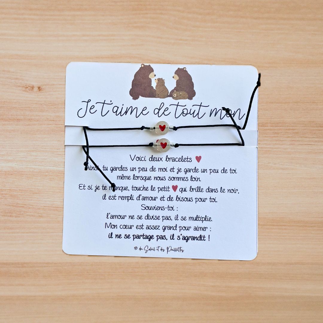 Le duo de bracelets cœur lumineux est disponible avec cordons noir ou rouge, et peut être décliné pour toute la fratrie, afin que chaque enfant se sente inclus et aimé. C’est le cadeau naissance idéal pour annoncer l’arrivée d’un bébé, célébrer la naissance ou accompagner votre enfant dans son nouveau rôle de grand frère ou grande sœur.