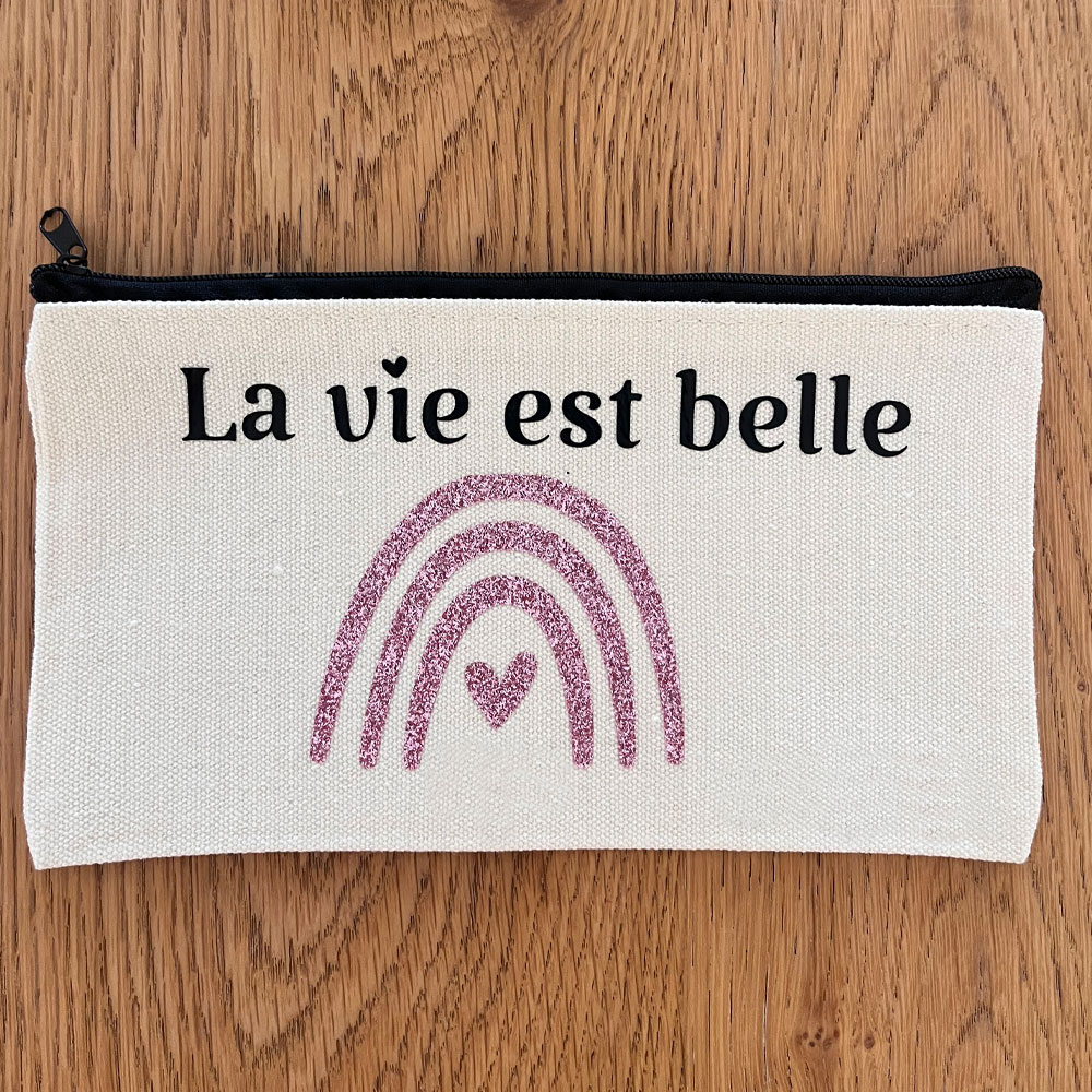 Offrez (ou offrez-vous) cette trousse en toile personnalisable, parfaite pour ranger du maquillage, des crayons, ou tout autre petit bazar de sac à main. Personnalisez-la avec la phrase et le symbole de votre choix pour créer un cadeau original et mémorable.